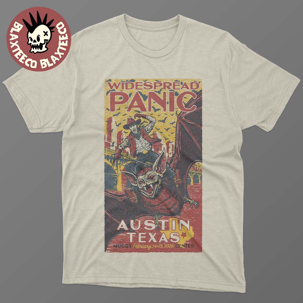 Blaxteeco: About Widespread Panic Austin Texas 2026 Event Poster At Moody Center On February 14 And 15 2026 Bat Cowboy Art T-Shirt: