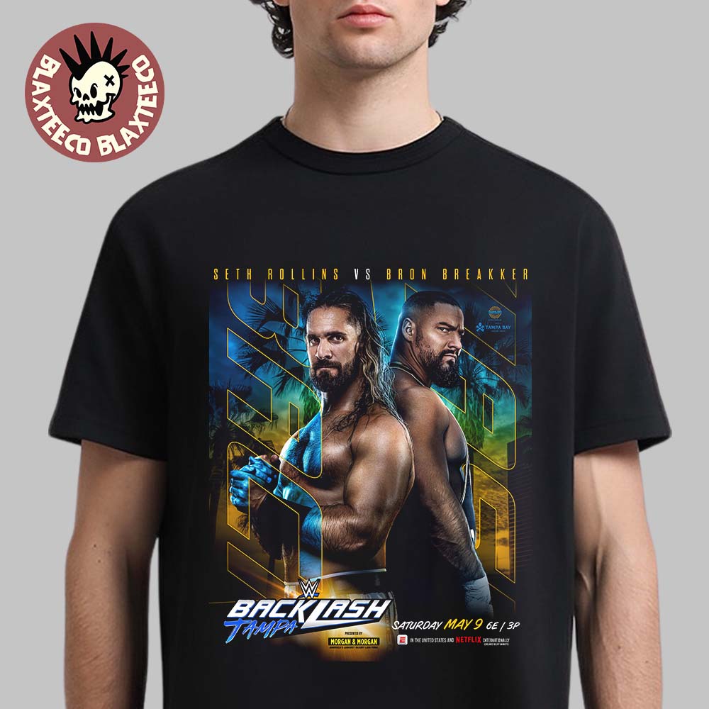WWE Backlash Tampa 2026 Seth Rollins Vs Bron Breakker Match Card T-Shirt Features: