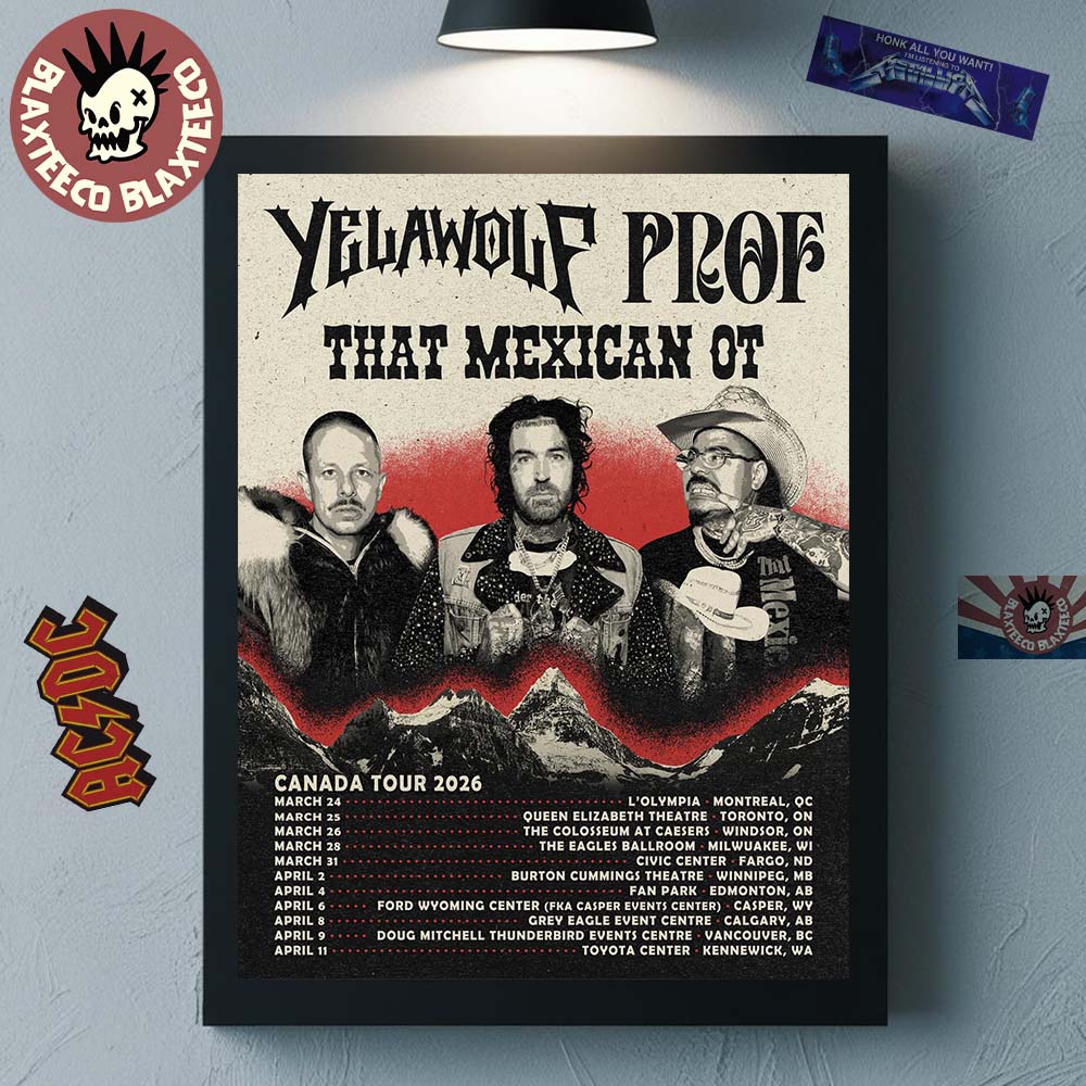 Yelawolf With Prof And That Mexican OT Canada Tour 2026 Schedule Dates Home Decor Poster Canvas is a bold and eye-catching tribute to one of the most exciting hip-hop tours of 2026. Featuring a gritty, vintage-inspired design with striking portraits of Yelawolf, Prof, and That Mexican OT, this poster perfectly reflects the raw energy and rebellious spirit of modern hip-hop culture. The detailed layout highlights the full Canada Tour 2026 schedule and dates, making it both a visually powerful artwork and a memorable collectible for fans who appreciate authentic tour memorabilia and underground rap aesthetics.
