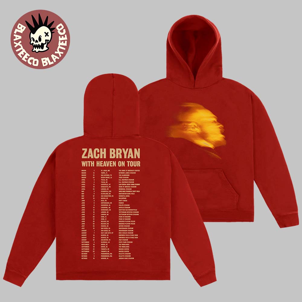 Stand out while celebrating live country music with the Zach Bryan With Heaven On Top Tour 2026 Merch With Dates Back Red Hoodie. This bold hoodie combines striking visuals with official tour-inspired design, making it a standout piece for fans following Zach Bryan’s 2026 performances.