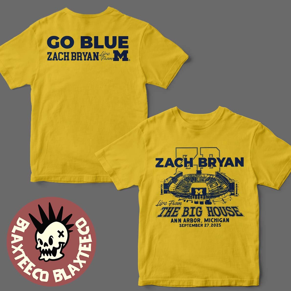 Blaxteeco: About Zach Bryan x Michigan Wolverines Live From The Big House Ann Arbor Michigan On September 27 2025 Go Blue Yellow Golden T-Shirt: