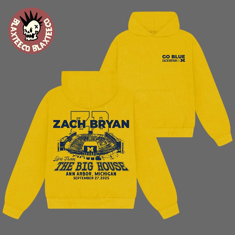 Show your support in vibrant style with the Zach Bryan x Michigan Wolverines Live From The Big House Ann Arbor Michigan On September 27 2025 Go Blue Yellow Hoodie. This striking yellow hoodie celebrates Zach Bryan’s unforgettable performance at The Big House while honoring the proud tradition of Michigan Wolverines football. Featuring bold “Go Blue” graphics and event details from September 27, 2025, it captures the energy and excitement of both the concert and the iconic stadium atmosphere. Crafted from premium, soft fabric with a cozy interior, this hoodie ensures warmth and comfort for game days, concerts, tailgates, or casual everyday wear.